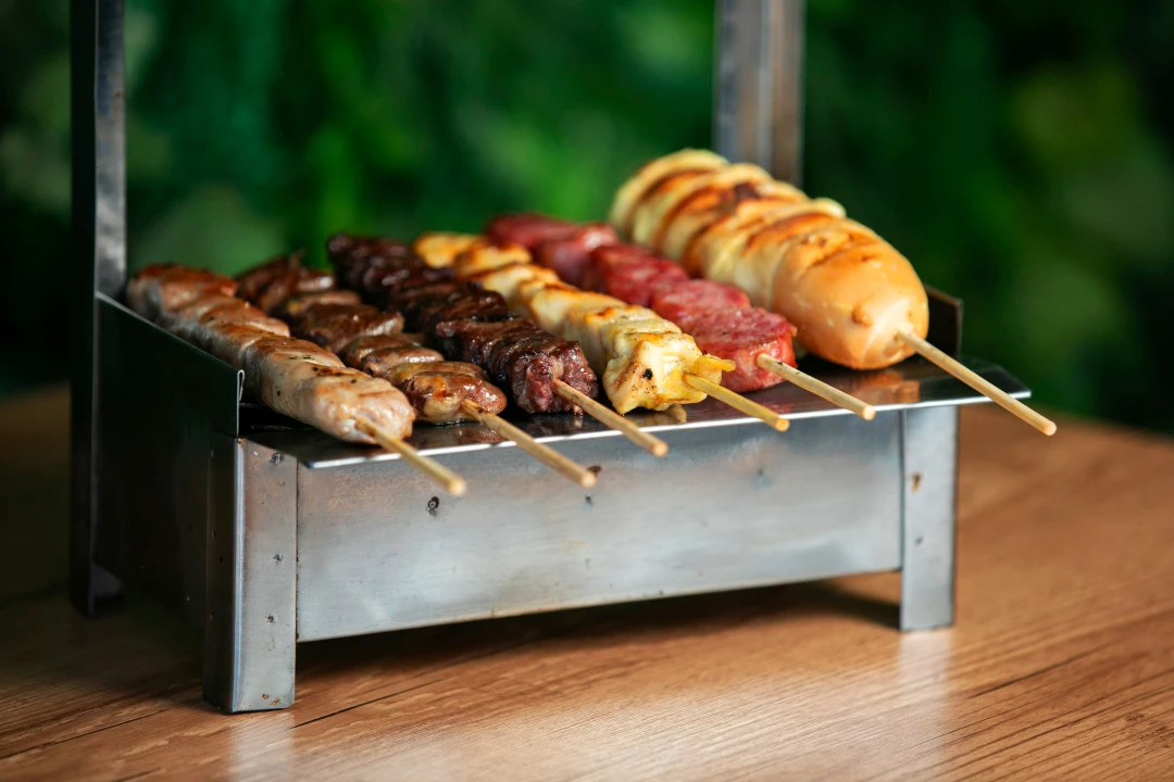 São 6 espetinhos nesse combo. Selecionamos os mais pedidos, olha só!1 Tradicional de Carne1 Espetinho de Frango1 Espetinho de Coração de Frango1 Espetinho de Linguiça Toscana1 Espetinho de Filé Porco1 Espetinho de Pão de Alho