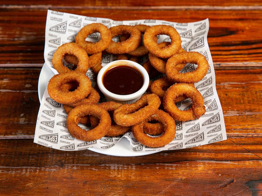 Aquela porção de respeito. Aneis de cebola empanados e fritos