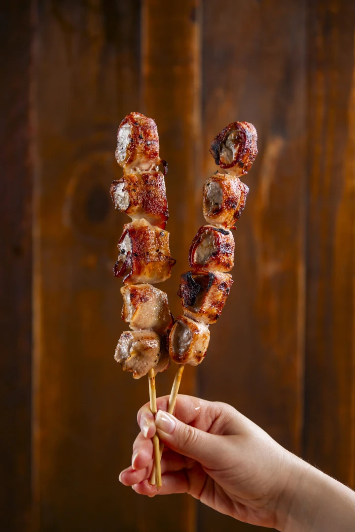 Espetinho de Batatas baby regadas em Azeite de Oliva com um toque de Alecrim assado na Brasa