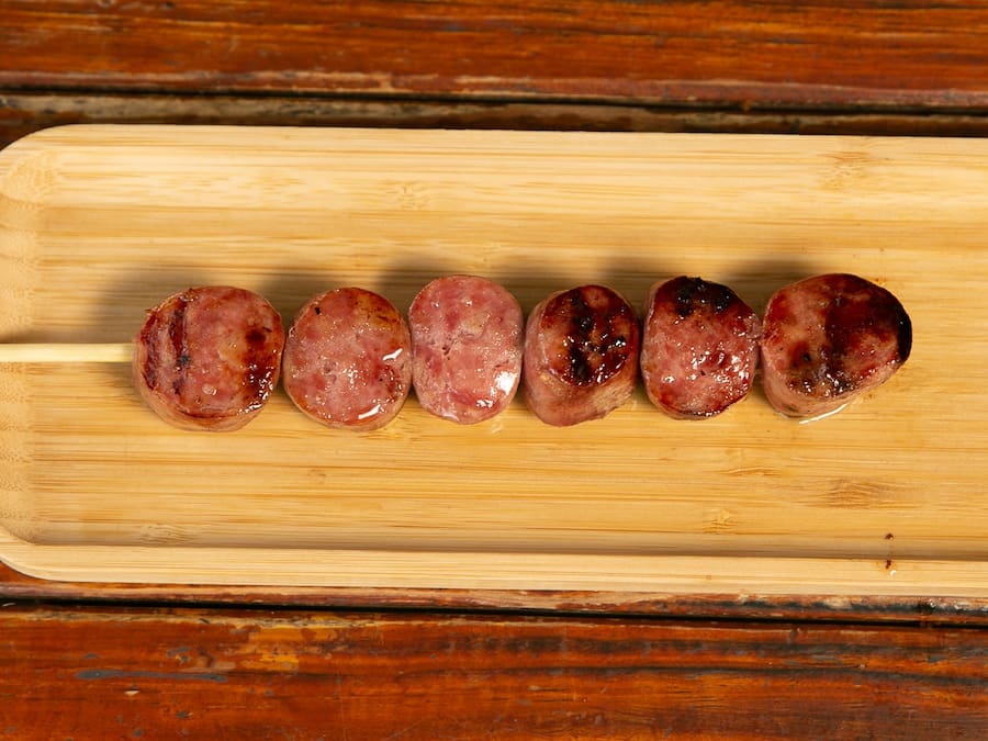 Espetinho de Linguiça Toscana assado na Brasa